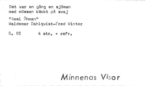 //// Det var en gång en sjöman med mössan käckt på svaj //// "Axel Öhman" //// Waldemar Dahlqvist—Fred Winter //// S. 82 4 sta'. + ~ro //// Minnenas Visor ////
