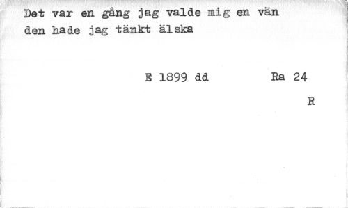 //// Det var en gång jag valde mig en vän den hade jag tänkt älska //// E 1899 dd Ra 24 //// R ////