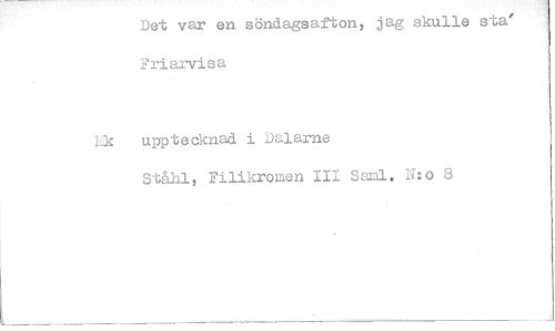 //// Det var en söndagsaft0n, jag skulle sta' Friarvisa //// Lk upptecknad i Dalarne //// Filikromen III Saml, IT:o 8 ////