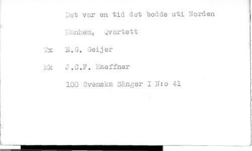 //// Det var en tid det bodde uti Norden //// Kanhem, vartett //// t2x. B.G. Geijer //// Lic J.C.F. Heeffner //// 100 Svenska Sånger I N:o 41 ////