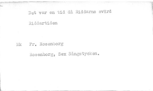 //// Det var en tid då Riddarns svärd Riddartiden //// Mk Fr. Rosenborg //// Aosenborg, Sex Sångstycken. ////