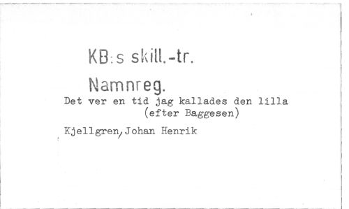 //// KB:s skate-tr. //// Namnreg. //// Det ver en tid jag kallades den lilla (efter Baggesen) //// Kjellgren/Johan Henrik ////
