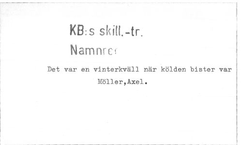 //// KB: s Skift.-tr. //// Namnrcf //// Det var en vinterkväll när kölden bister var Möller, Axel. ////