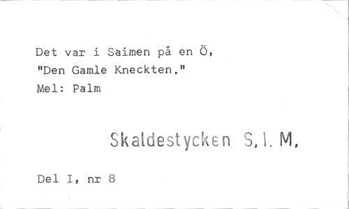 //// Det var i Saimen på en Ö, "Den Gamle Kneckten." Mel: Palm //// SkatdestyckEn Si. M. //// Del I, nr 8 ////
