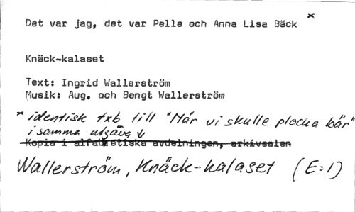 //// x //// Det var jag, det var Pelle och Anna Lisa Säck //// Knäck-kalaset //// Text: Ingrid Wallerström //// Musik: Aug. och Bengt Wallerström //// fr 1/7/ 'War skm //e F/acila k713.'* //// /J04~ st4 etisa //// ten //// Waliers7ir‘m, , Hecge,le- kiiMse71 ////