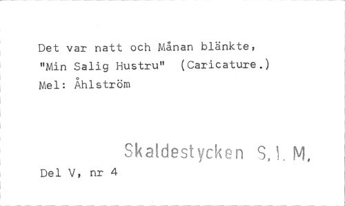 //// Det var natt och Månan blänkte, "Min Salig Hustru" (Caricature.) Mel: Åhlström //// Skaldestyck ,. 1. M, //// Del V, nr 4 ////