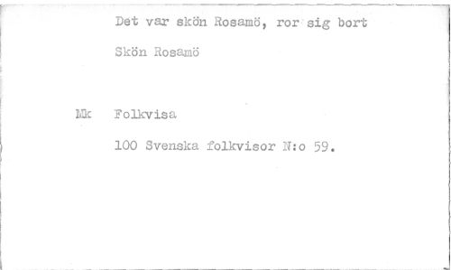//// Det var skön Rosamöt ror sig bort Skön Rosamö //// Nk Folkvisa //// 100 Svenska folkvisor N:o 59. ////