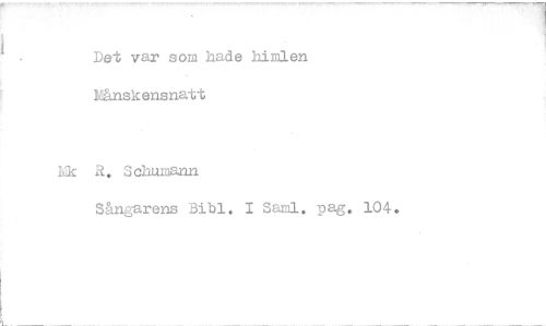 //// Det var som hade himlen kånskensnatt //// Kk R. Schumann //// Sångarens Bibi. I Saml. pag. 104. ////