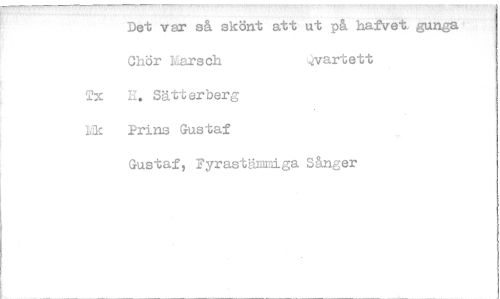 //// Det var så skönt att ut på hafstet. gunea //// Chör iiarsch vart ett //// Tx H. Sätt erberg //// k Prins Gustaf //// Gustaf, Fyrastämnig er ////