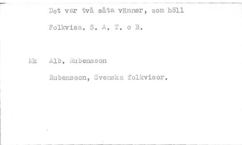 //// Det var två såta vänner, som höll Folkvisa. S. A. T. o B. //// ic Alb. L-?.ubensson //// Rubensson, Svenska folkvisor. ////