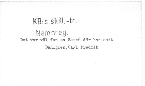 //// KB:s skitt.-tr. //// NamrireO. //// Det var väl fan sa Sateh där han satt Dahlgren/Cab Fredrik ////