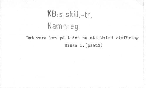 //// KB:s spill.-tr. //// Namnreg. //// Det vara kan på tiden nu att Malmö visförlag Nisse L.(pseud) ////