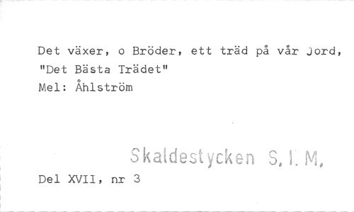 //// Det växer, o Bröder, ett träd på vår jord, "Det Bästa Trädet" //// Mel: Åhlström //// SKildestyck n S, M, //// Del XVII, nr 3 ////