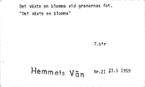 //// Det växte en blomma vid granarnas fot. "Det växte en blomma" //// 7.str //// Herm ets V a 71 Nr.2I V.5 1959 ////