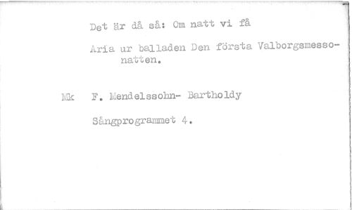 //// Det är då så: Om natt vi få //// Aria ur balladen Den första Valborgsmessonatten. //// Lflc F. kendelssolln- Bartholdy Sångprogrammet 4. ////