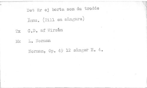 //// Det är ej borta som du trodde //// Ännu. (Till en sångare) //// 122c O.D. af Wirshn //// NK Z. Norman //// Norman, Op. 49 12 sånger 11. 4. ////