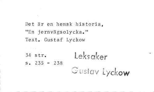 //// Det är en hemsk historia, "En jernvägsolycka." Text. Gustaf Lyckow //// 34 Str. Leksaker //// s. 235 - 238 //// ;tav yckow ////