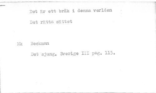 //// Det är ett bråk i denna verlden Det rätta sättet //// Nk Beckman //// Det sjung. Sverige III pag. 113. ////