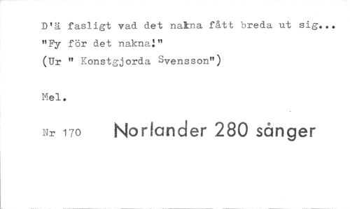 //// D'å fasligt vad det nakna fått breda ut sig... "Fy för det nakna!" //// (Ur " Konstgjorda Svensson") //// Töel . //// Nr 170 Norlander 280 sånger ////