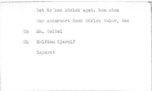 //// Det är hos kärlek eget, han utan Eur underbart dock kärlek talar. Duo Tx Em. Geibel //// Mk Halfdan Kjerulf //// Separat ////