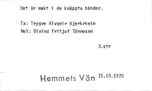 //// Det är makt i de knäppta händer. //// Tx: Trygve Alvgeir Bjerkrheim Mel : öivind Fritjof Tönnesen //// 3.str //// Hemmets Vän 15.10.1970 ////