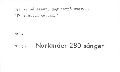 //// Det är så sannt, jag därpå svär... "Fy sjutton gubbar!" //// Mel. //// Nr 38 Noriander 280 sånger ////