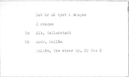 //// Det är så tyst i *ogen //// I skogen //// tbc Alb. Gellerstedt //// Mk Andr, Hallon //// Eall6n, Tre visor Op. 29 N:o 2 ////