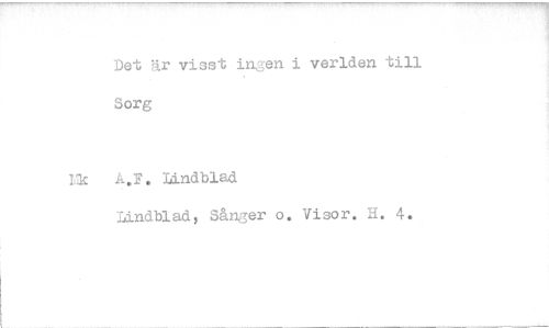 //// Det är visst inren i verlden till Sorg //// Ek A.F. Lindblad //// Lindblad, Sånger o. Visor. H. 4. ////