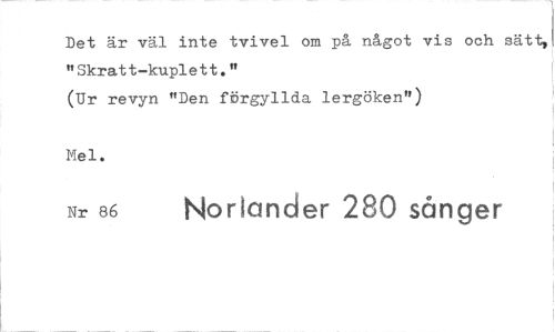 //// Det är väl inte tvivel om på något vis och sätt, "Skratt-kuplett." //// (Ur revyn "Den förgyllda lergöken") //// Mel. //// Nr 86 Noriander 280 sånger ////