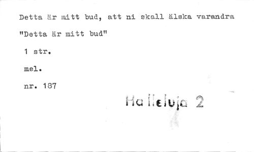 //// Detta är mitt bud, att ni skall älska varandra //// "Detta är mitt bud" //// 1 str. //// mel. //// nr. 187 //// lie e i ////