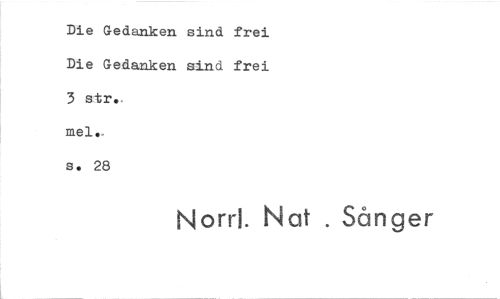 //// Die Gedanken sind frei Die Gedanken wind frei 3 str, //// mel, //// s. 28 //// Nord. Nat . Sånger ////