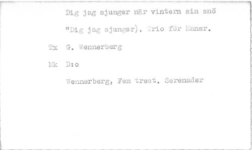 //// Dig jag sjunger nr vintern sin snö "Dig jag sjunger). 'trio för I,ansr. TX G. 'ennerberg //// kik D:o //// Wennerberg, Fem tres'. Serenader ////