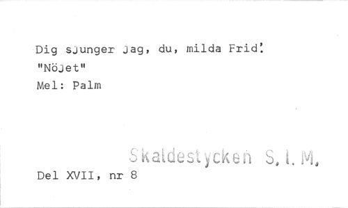 //// Dig sjunger Jag, du, milda Frid: "Nöjet" //// Mel: Palm //// Ska.descken S, //// Del XVII, nr 8 ////