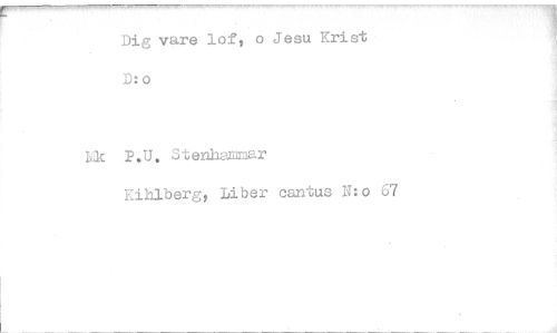//// Dig vare lof, o Jesu Krist D:o //// P.U. Stenhammar //// Kilalberg, Liber cantus N:o 67 ////
