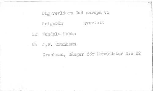 //// Dig verldars Gud anropa vi //// :risbön 4vartett //// (2x Wendela Lebbe //// L J.P. Oron:hamn //// Cronhann, SPlwzer för Lansröster Nto 22 ////