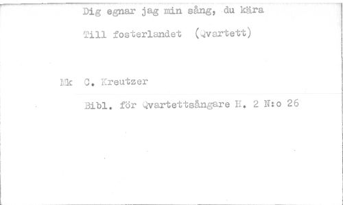 //// Dig agnar jag min sång, du kära Till fosterlandet kvartett //// rk 0. Xreutzer //// Bibi. för Qvartettsångare H. 2 N:o 26 ////