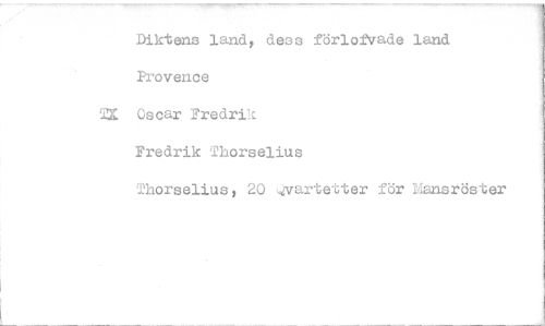 //// Diktens land, dess förlofvade land //// Provence //// `'a Oscar Fredrik //// Fredrik Thorselius //// Thorselius, 20 4vartetter för nanstöster ////