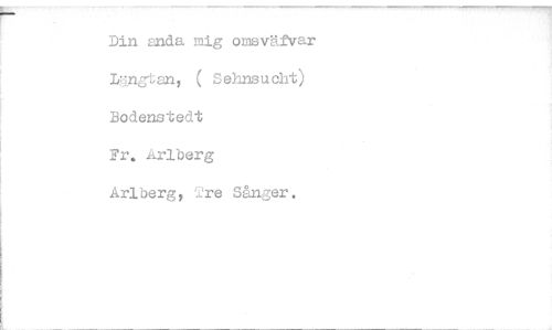 //// Din anda mig omsväevar kingtan, ( Sehnsucht) Bodenstedt //// Fr. Arlberg //// Arlberg, '2re Sånger. ////