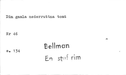 //// Din gamla nederruttna tomt //// Nr 46 //// Bellman //// s• 134 //// En st rim ////