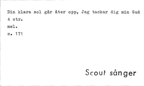 //// Din klara sol går åter opp, Jag tackar dig min Gud 4 str. //// mel. //// s. 171 //// Scout sånger ////