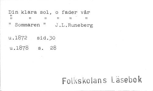 //// Din klara sol, o fader vår //// If //// 11 n tf tt n tt //// Sommaren J.L.Runeberg //// u.1872 sid.30 u.1878 s. 28 //// FoL skolans Läsebok ////
