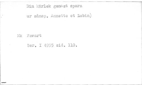 //// Din kärlek genast spara ur sånsp. Annette et ;tubin) //// LTk IJavart //// Ser. I 4995 sid. 110. //// ••••11011 ////