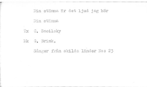 //// Din stämma är det ljud jag hör //// Din stämma //// Tx C. Snoilsky //// Lk G. Brink. //// Sånger från skilda länder Ids o 23 ////