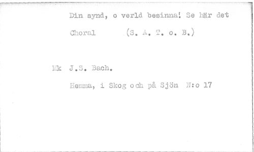 //// Din synd, o verld besinna! Se här det //// Choral (g. Å. 2. 0. B.) //// Lk J.S. Bach, //// Hemma, i Skog och på Sjön N:o 17 ////