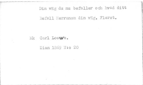 //// Din väg du nu befaller och Yrrad ditt Befall Rerranom din väg. Flerst. //// Mk Carl Wenn. Zion 1869 IT:o 20 ////