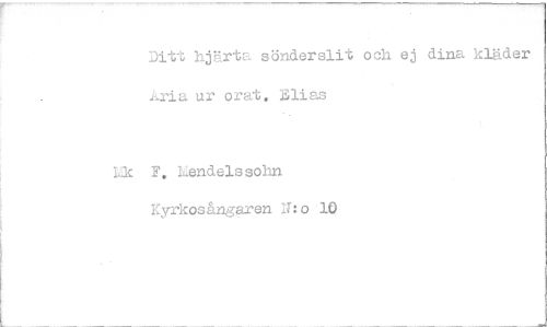 //// Ditt hjärta sönderslit och ej dina kläder ur orat. Blias //// Lk F. Lendelssohn //// Kyrkosångaren 11:o 10 ////