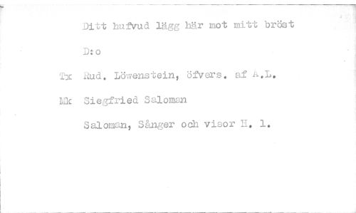 //// Ditt huvud lägg här mot mitt bröst //// D:o //// Tx äud. Löwensteint öfvers. af A.14 //// Lk Siegfried Saloman //// Saloman, Sånger och visor H. 1. ////