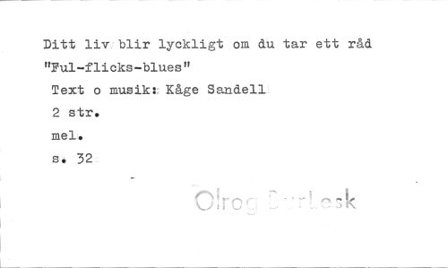 //// Ditt liv, blir lyckligt om du tar ett råd //// "Ful-flicks-blues" //// Text o musik: Kåge Sanden_ //// 2 str. //// mel. //// s. 32 ////