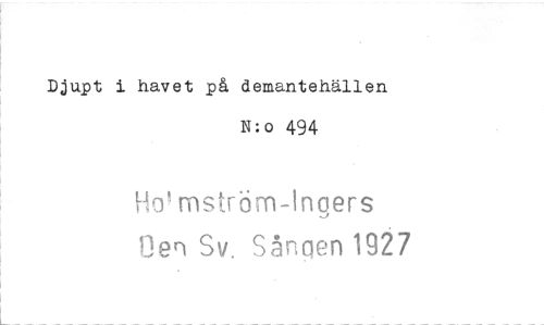 //// Djupt i. havet på demantehällen. //// N:o 494 //// asström-Ingers //// r)en Sv. Sången 1927 ////