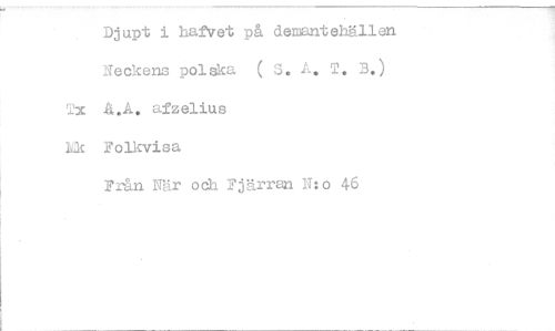 //// Djupt i hafVet på dewntehällen //// Neckens polska ( . 2. B. //// x afzelius //// 'tik Folkvisa //// Från När och Fjärran Y:o 46 ////